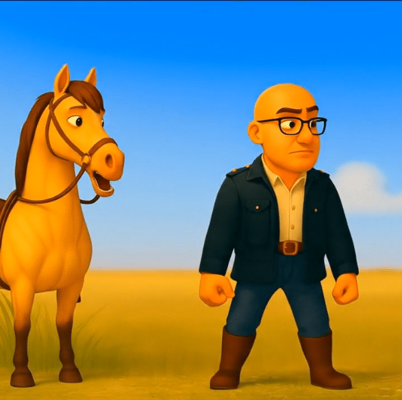 This project was created for our client Mr. Fran as a short AI-generated cartoon action sequence set in an open desert field.