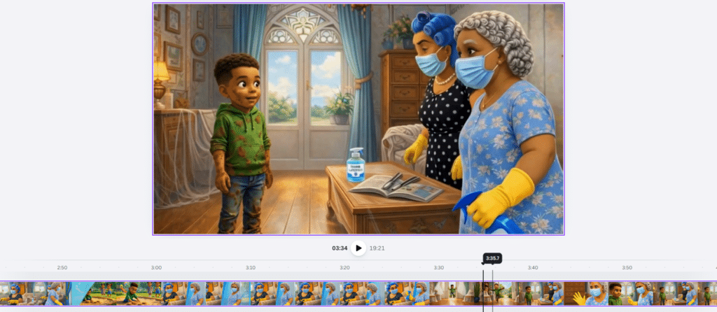 In this phase, the script for Episode 2 was analyzed and converted into visual storytelling scenes. Static cinematic images were created to represent key moments from the episode.