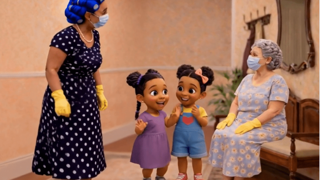 During this phase, character visuals and scene elements were refined to match the story’s comedic and family-friendly atmosphere.